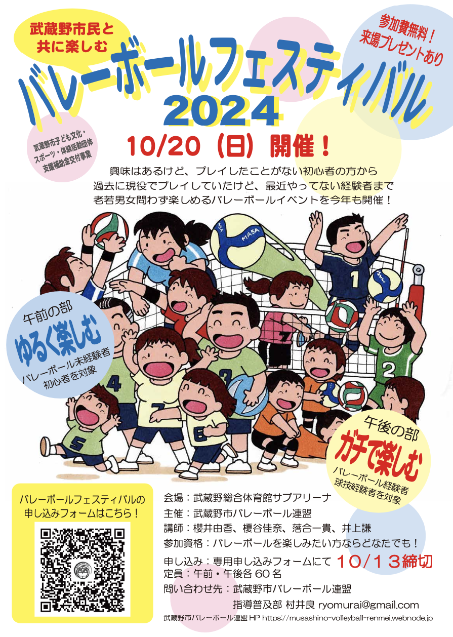 お問い合わせ先:武蔵野市バレーボール連盟 指導普及部 村井(ryomurai@gmail.com)