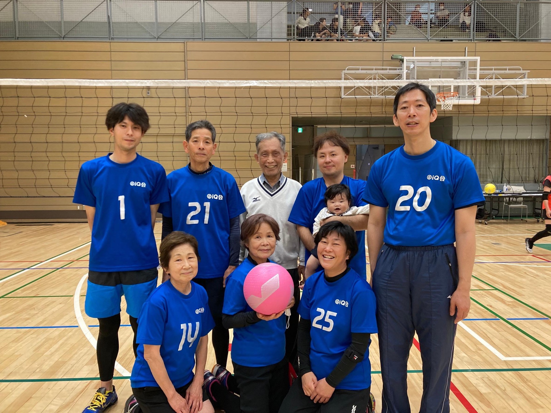 @IQ会は、教育委員会主催の初心者スポーツ教室でソフトバレーボールを取り上げて2年目の平成13年に、代表者が参加者の皆さんに同好会作りを提案したのが始まりです。 当初は若いかたが多かったのですが、最近は中高齢者中心のチームになっています。チーム名は@IQ=愛球ということで、ソフトバレーボールを通じ、身体も頭も鍛えようと命名されました。ソフトバレーは皮バレーに比べて、一般のかた、特に中高年に親しみやすいスポーツだと思います。@IQ会では、20代から70代の男女が、健康のため、また市民交流の一環として楽しんでおります。